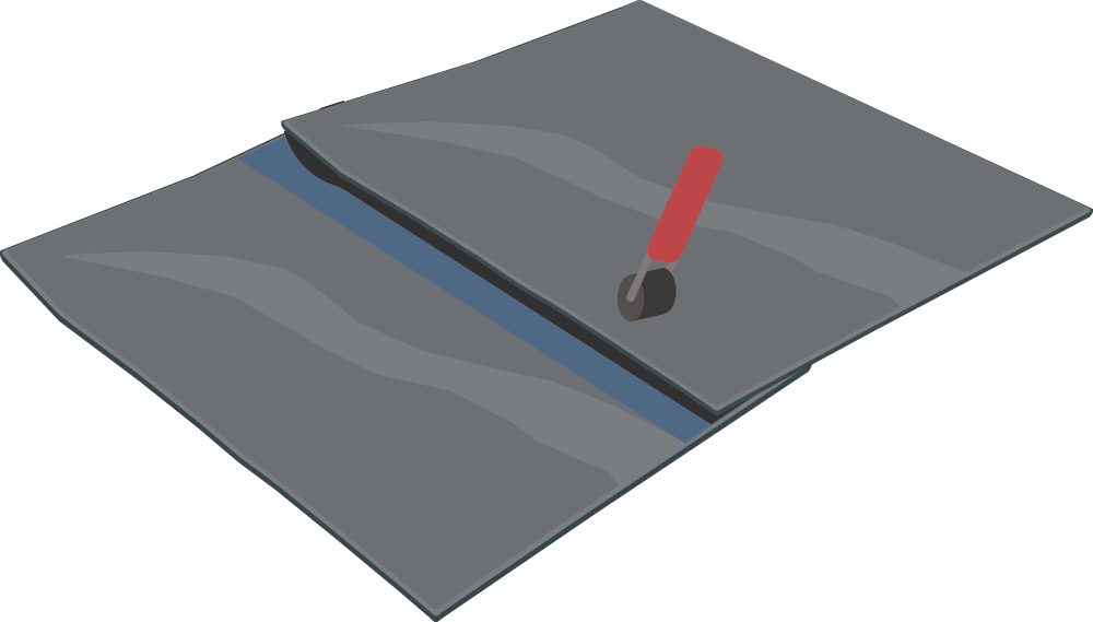 Zunächst die Folienbahnen so auslegen, dass sie sich mindestens 10 cm überlappen. Der Untergrund muss sauber, trocken und frei von Schmutzpartikeln sein, damit das EPDM Band später optimal haftet.