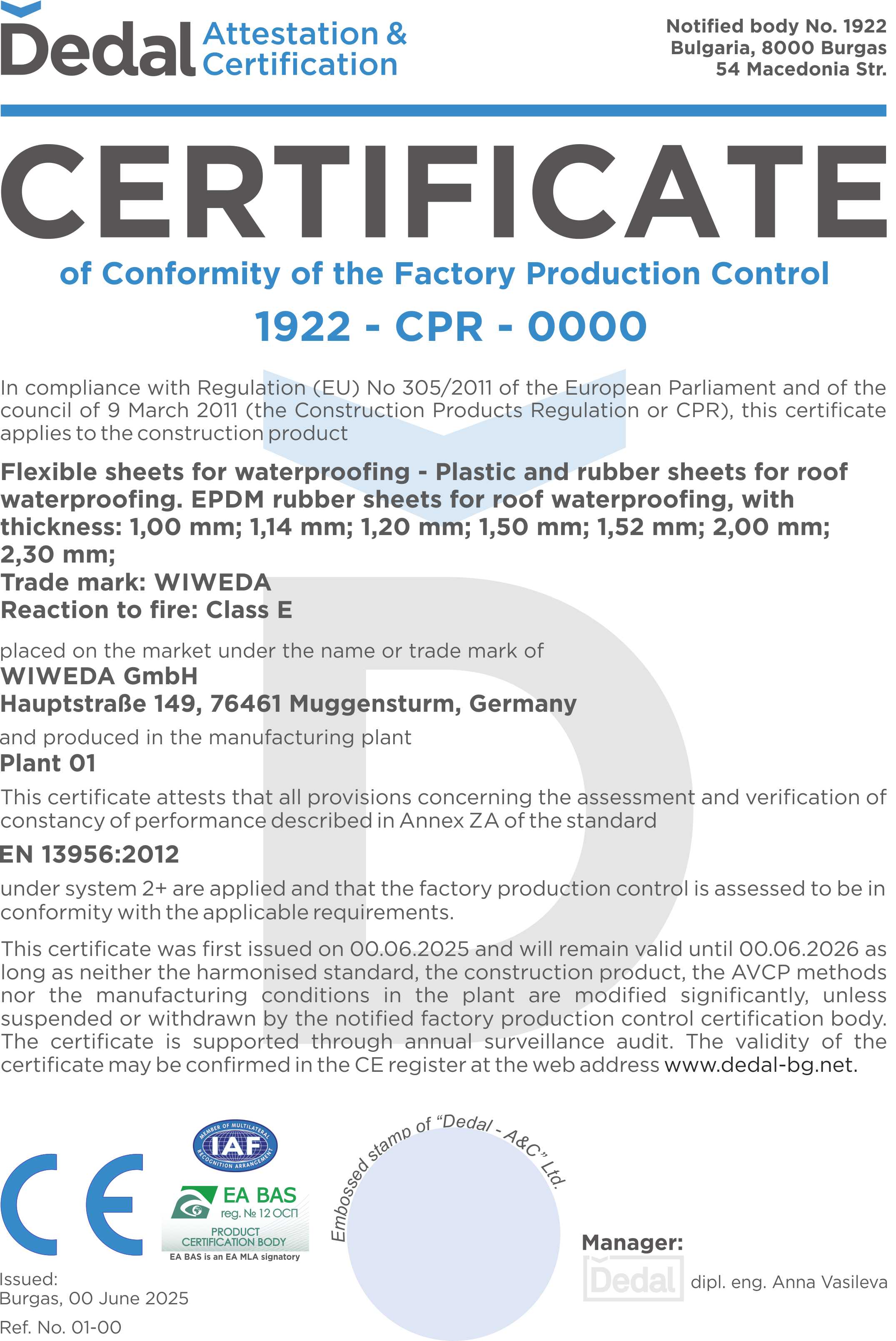 Produkteigenschaften der EPDM Dachfolie 1,20 mm