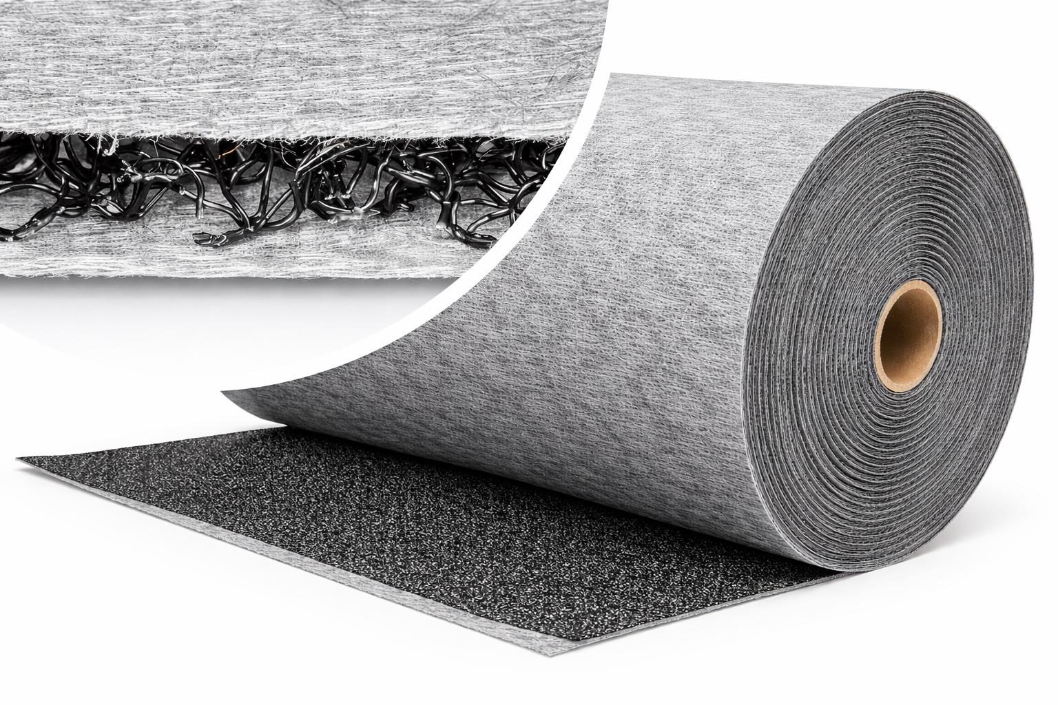 Das dreidimensionale Wirrgelege aus UV-stabilisierten, extrudierten Monofilamenten besitzt eine Stärke von ca. 22 mm und gewährleistet eine zuverlässige Ableitung von Überschusswasser bei gleichzeitiger Wasserspeicherung für Trockenperioden.